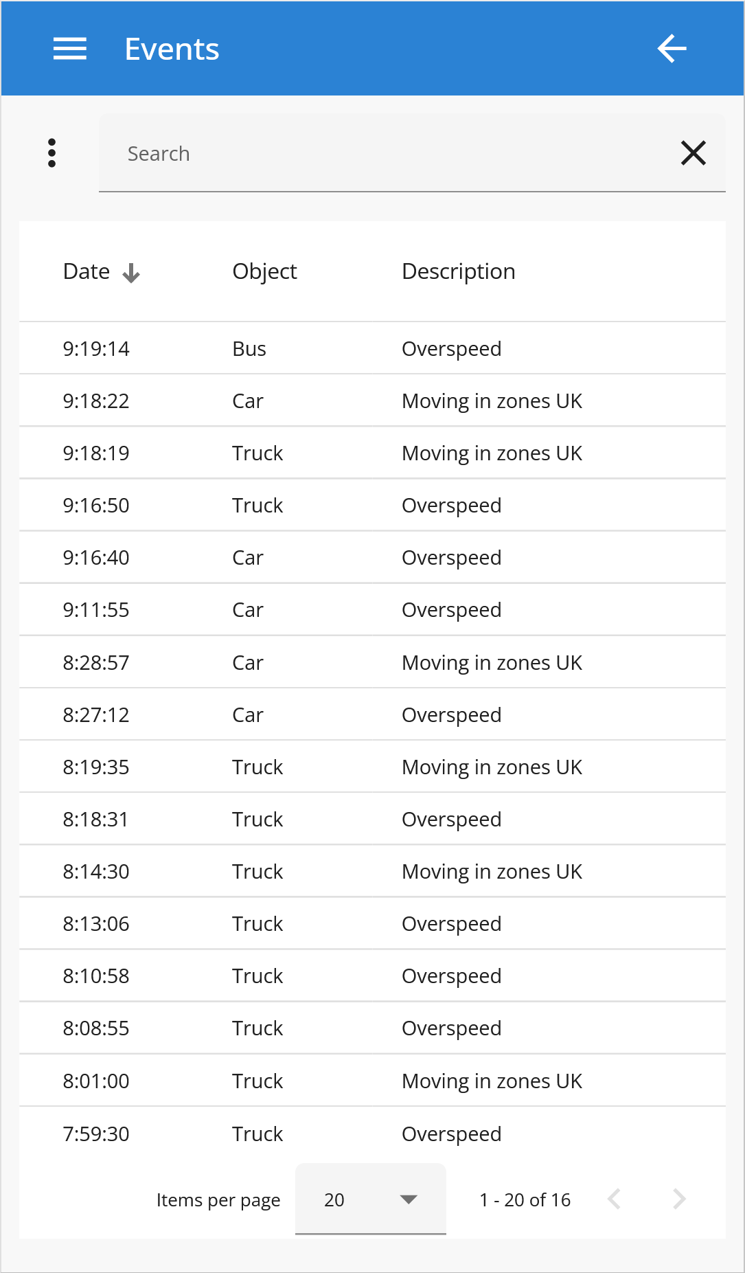 The event functionality in the system is crafted to assist in object monitoring by issuing real-time notifications of rule violations. These violations encompass instances of speeding and objects moving in and out of designated zones, among others. This feature serves as a potent tool for enforcing compliance with established rules and regulations, empowering users to take immediate action upon any breaches. Moreover, it fosters user awareness and informed decision-making regarding object actions and movements, thereby promoting the safety, security, and effective management of assets.