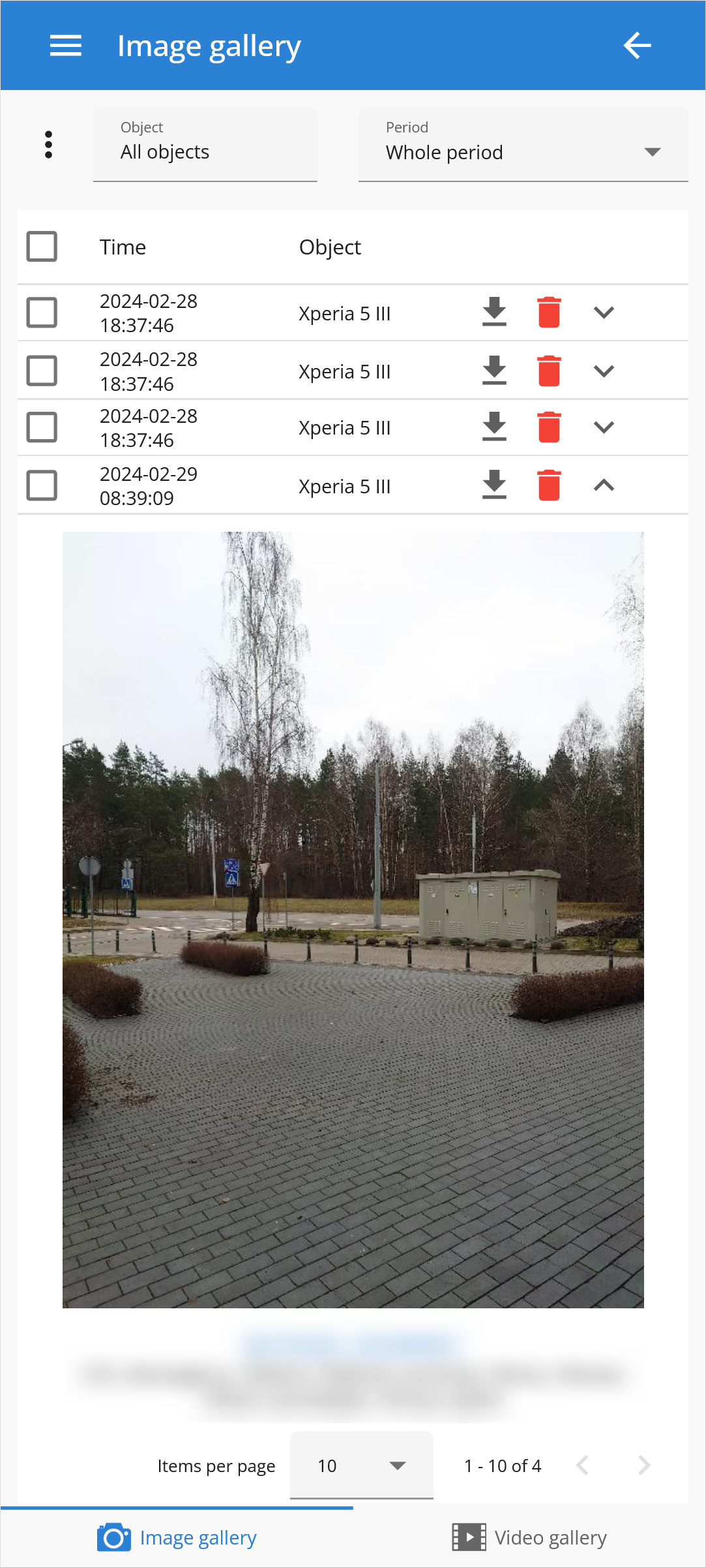 In the image gallery, users have the capability to view images that have been received from tracking devices and smartphones.