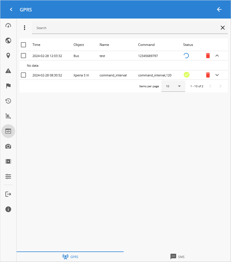 This section allows to send GPRS and SMS commands to tracking devices or smartphones. User can enter commands manually or select from previously created command templates for different devices. This streamlines the process and ensures devices receive necessary updates without manual intervention.
