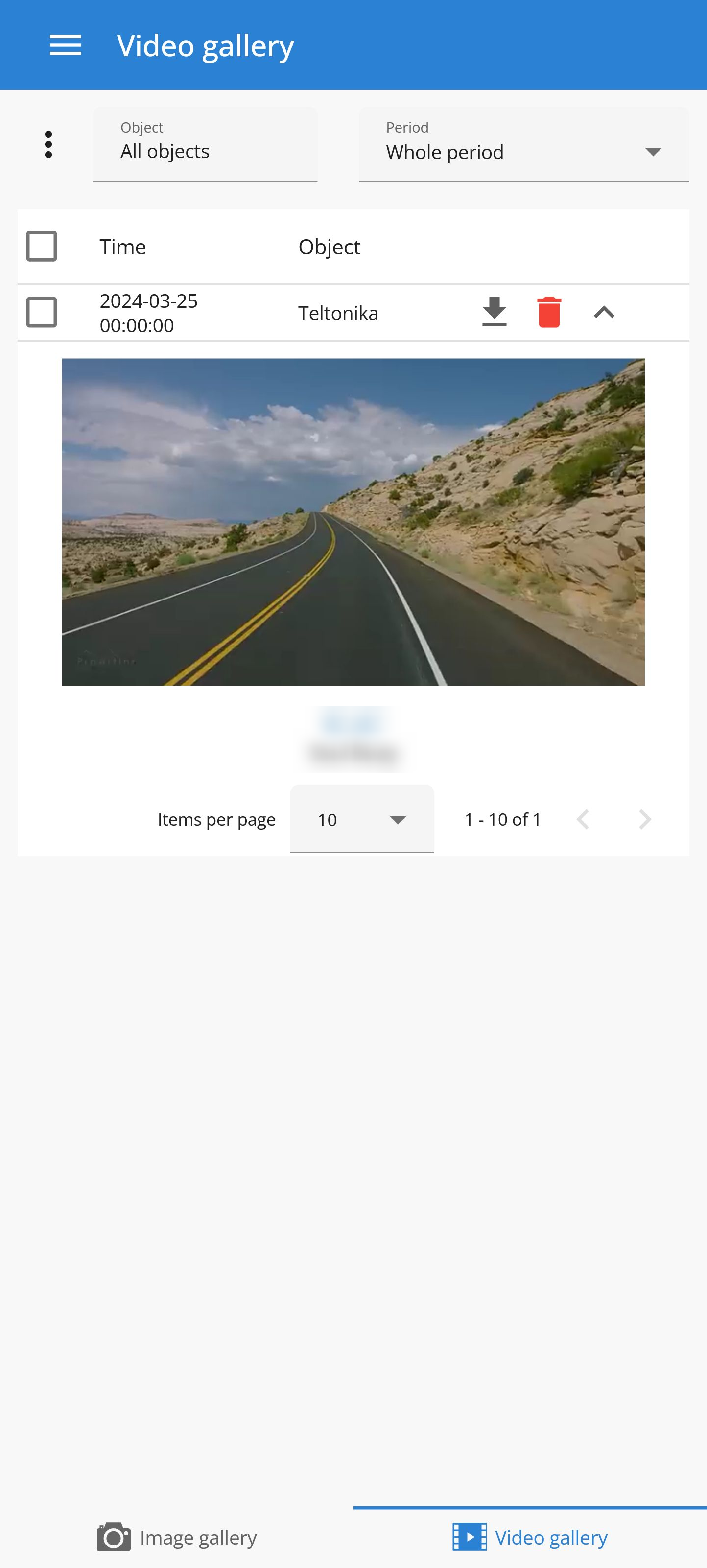 In the video gallery, users have the ability to view videos that have been received from Teltonika DualCam devices.
