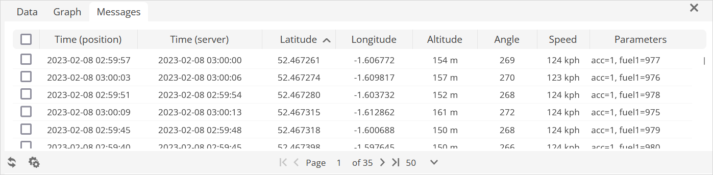 The location messages feature provides a comprehensive list of all location points received from the selected GPS tracking device over a specified time period. This information is valuable for verifying that the device is transmitting the necessary sensor parameters and can be used to configure sensors and events. The ability to view this data provides a clear understanding of device behavior and enhances the accuracy of sensor readings.