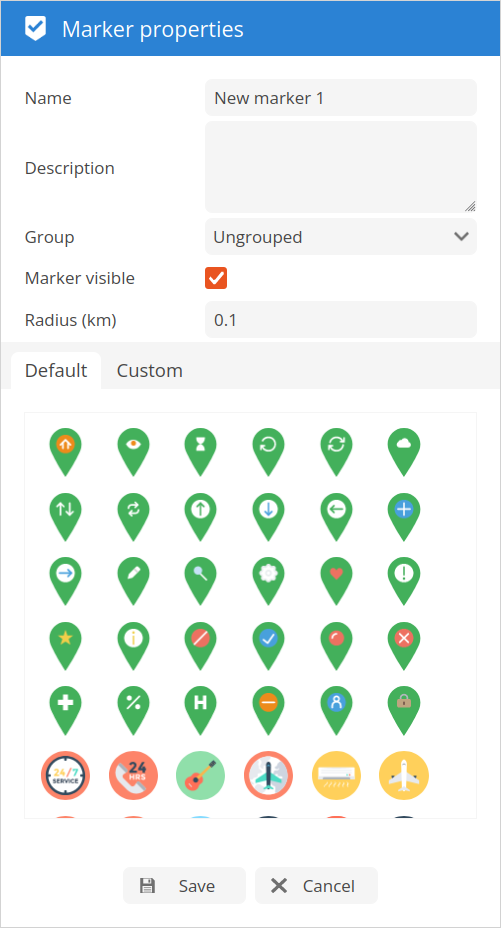 Default - allows to select marker icon from preinstalled marker icon list.