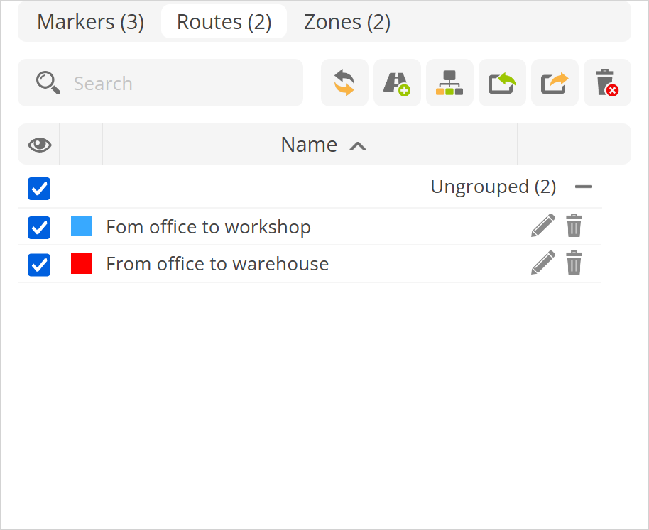 In the Routes section, user can create routes and use them to receive notifications about inputs and outputs. This function allows you to monitor the dependence of objects on the route.