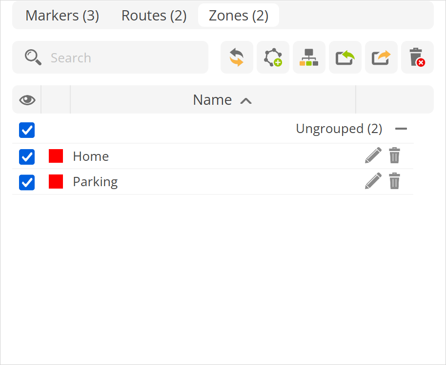 In the Zones section, user can create zones and use them to receive notifications about entering and leaving a zone. This function allows you to monitor the dependency of objects on the zone.
