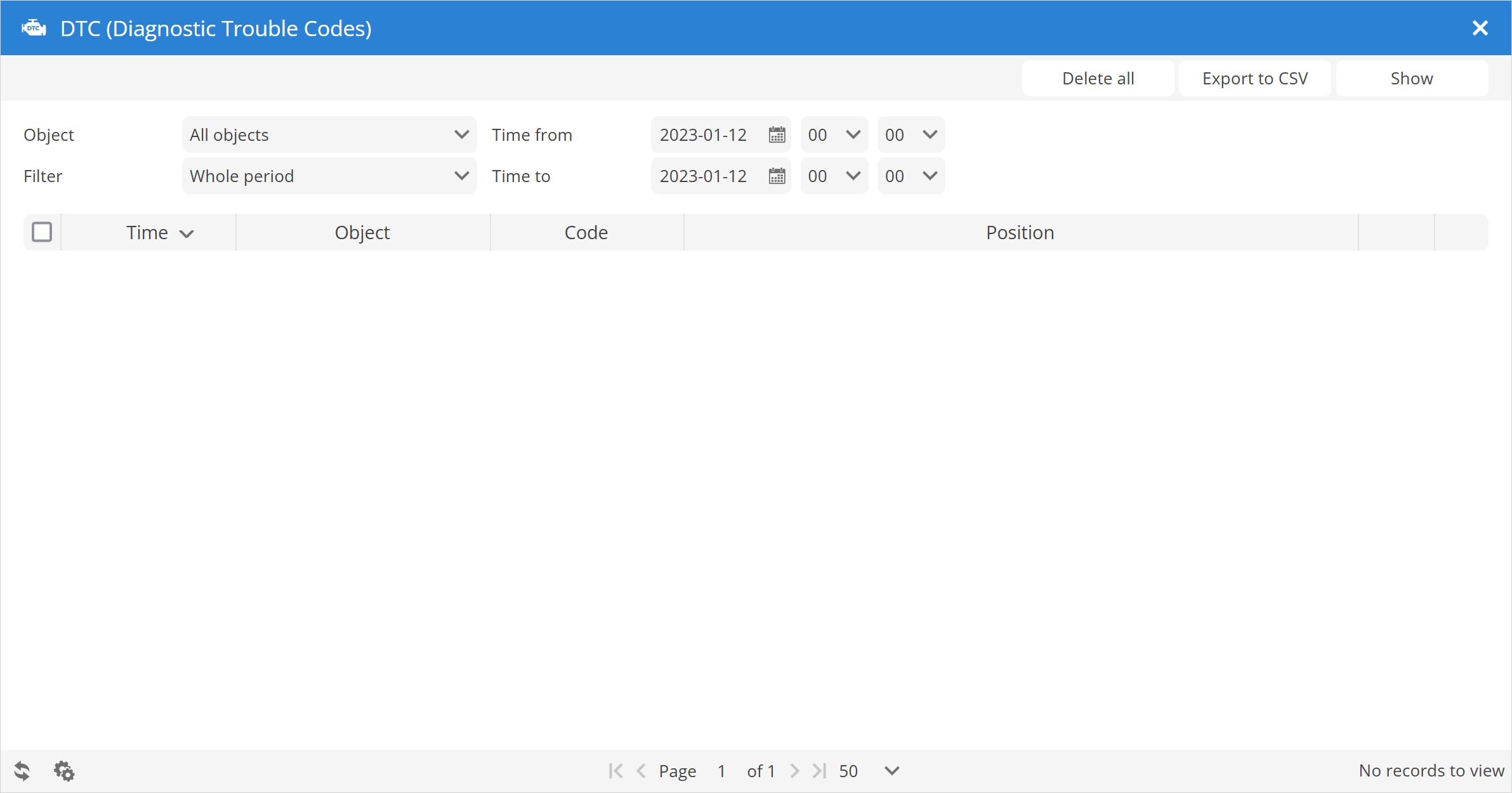Filter - quick selection of the period for which DTC entries should be displayed.