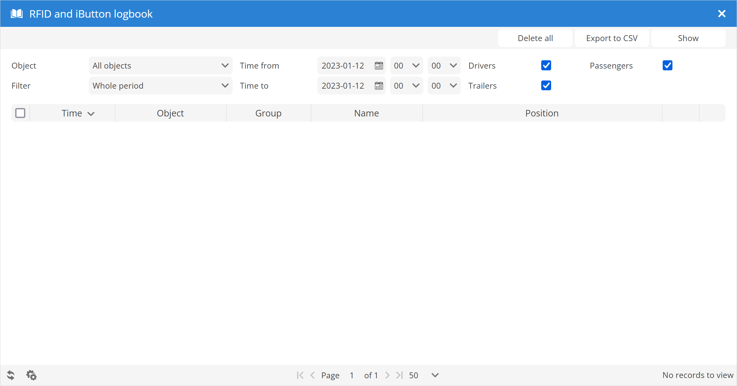 The logbook allows to see the information received from RFID and iButton. All recorded changes of drivers, trailers and passengers are displayed.