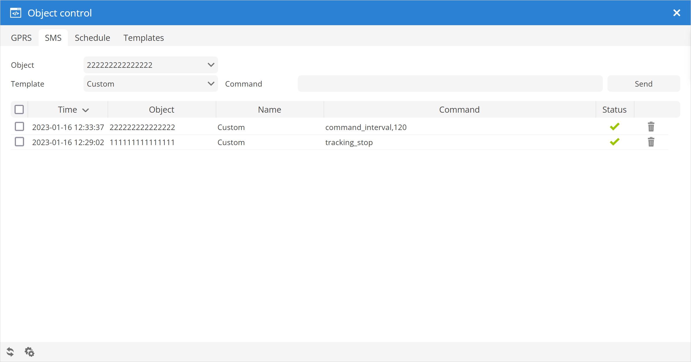 Command - in this field user can enter SMS command or selected template command will be displayed.