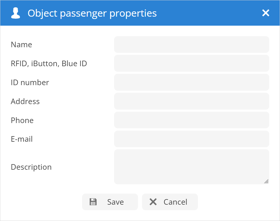 RFID, iButton, Blue ID - enter RFID, iButton or Blue ID codes, this is required for auto assign passengers.