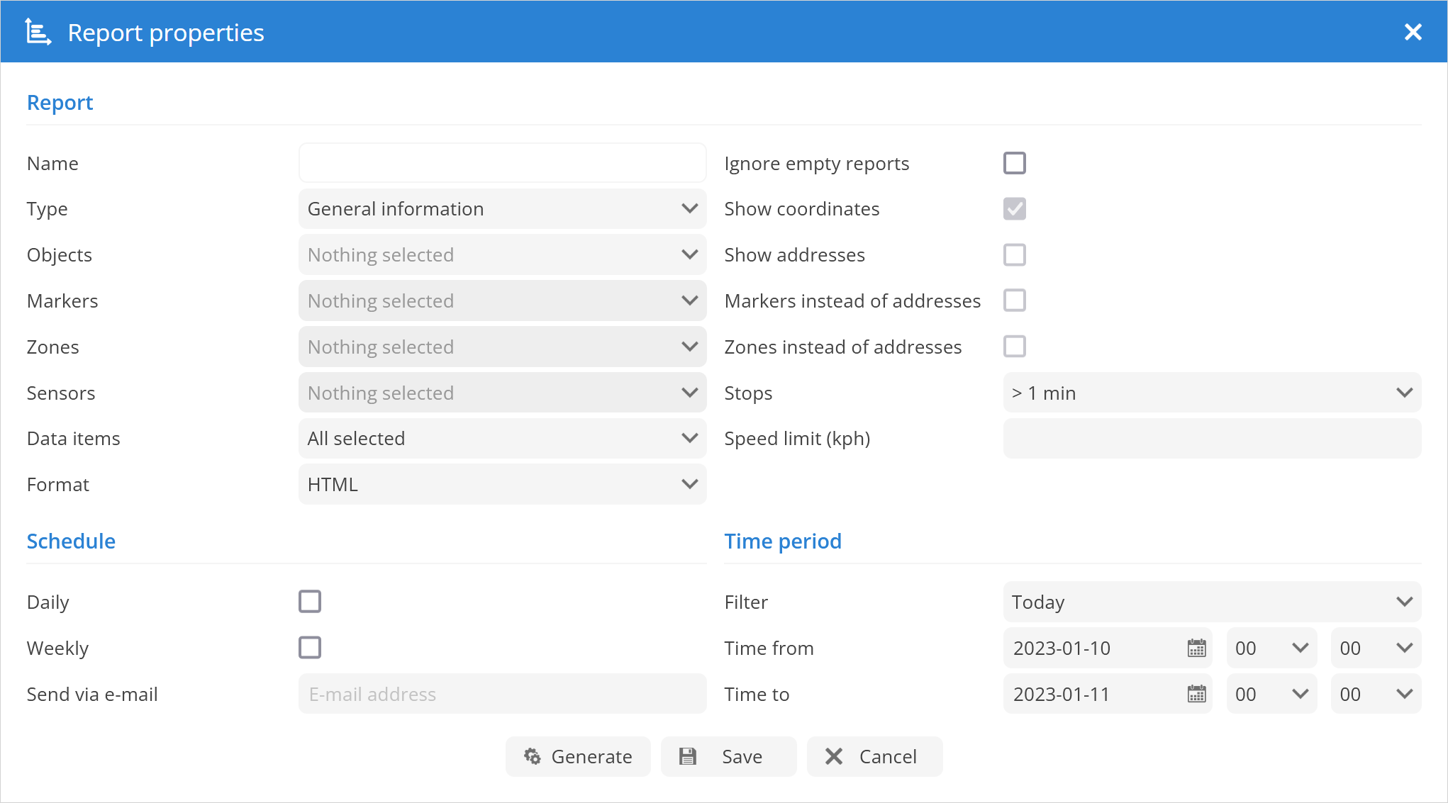 Ignore empty reports - if the object or objects have no records for the set period of time, the empty report for this object or objects will not be displayed.
