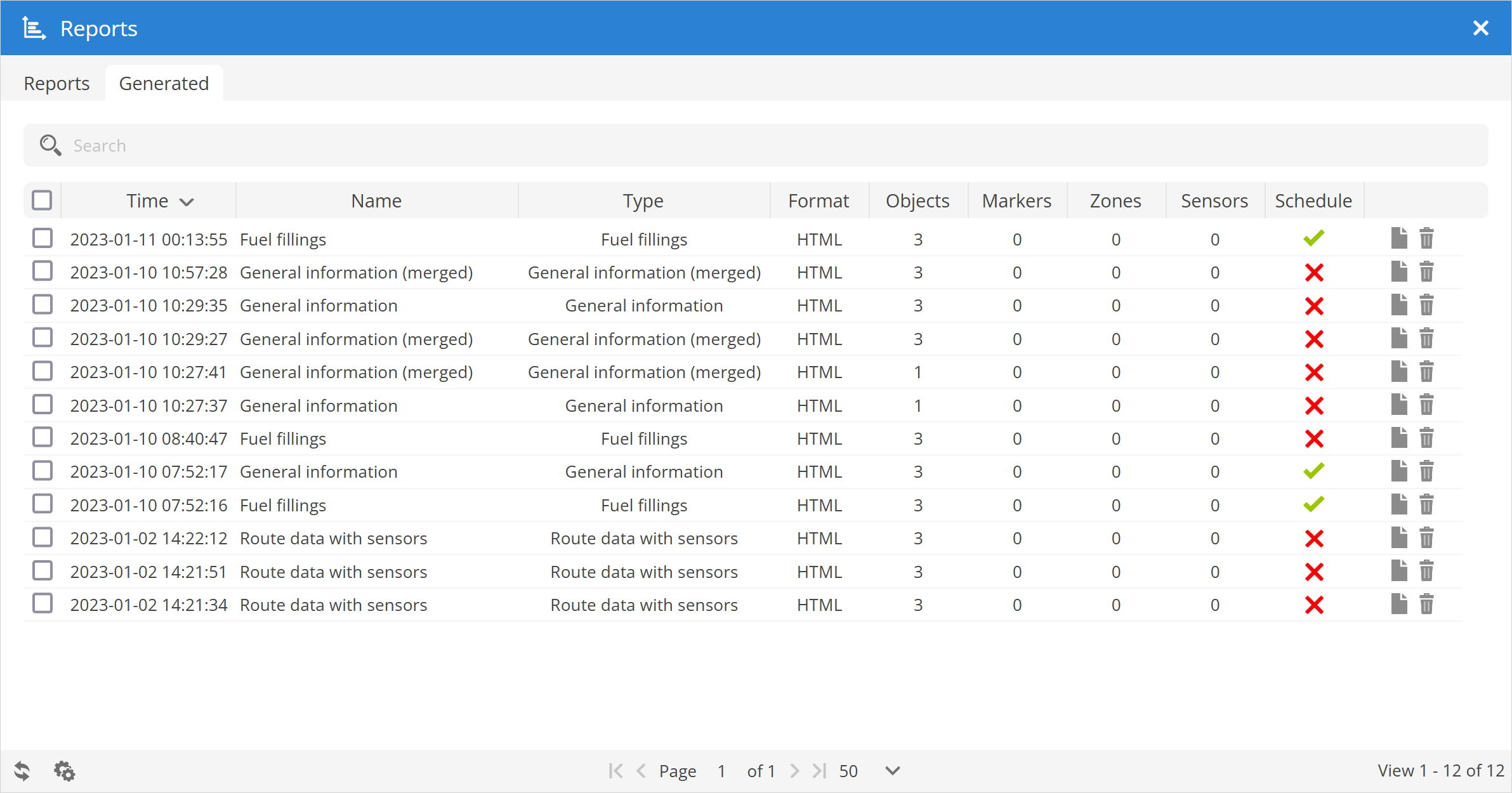The Generated reports section displays all generated reports and provides quick access to reopen them without having to regenerate them.